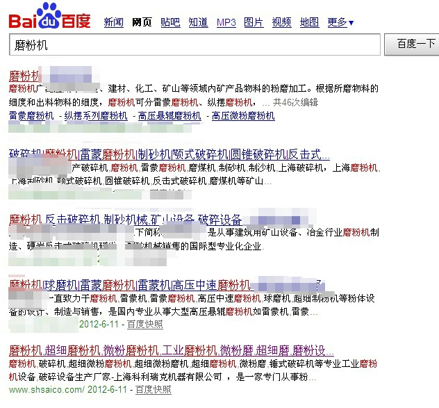 這種磨粉機排名的差異還不算太大,有時甚至有5名以上的差異,分析原因是不是站長現在還沒有完全掌握百度現在的更新頻率和算法?望懂得的人士給予指教~